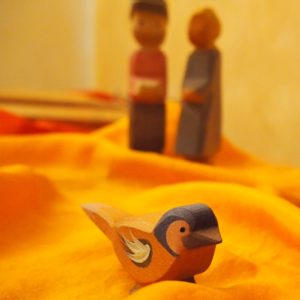 Der Förster stieg hinauf, holte das Kind herunter und dachte: „Du willst das Kind mit nach Haus nehmen und mit deinem Lenchen zusammen aufziehen.“ Er brachte es also heim, und die zwei Kinder wuchsen miteinander auf. Das aber, das auf dem Baum gefunden worden war, und weil es ein Vogel weggetragen hatte, wurde Fundevogel geheißen. Fundevogel und Lenchen hatten sich so lieb, nein so lieb, dass, wenn eins das andere nicht sah, ward es traurig.